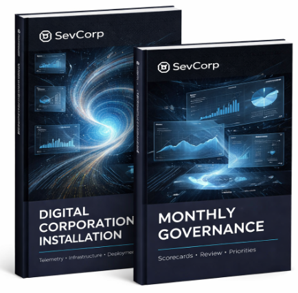 A structured engagement that turns your website into a digital corporation, then governs it with recurring executive visibility.
